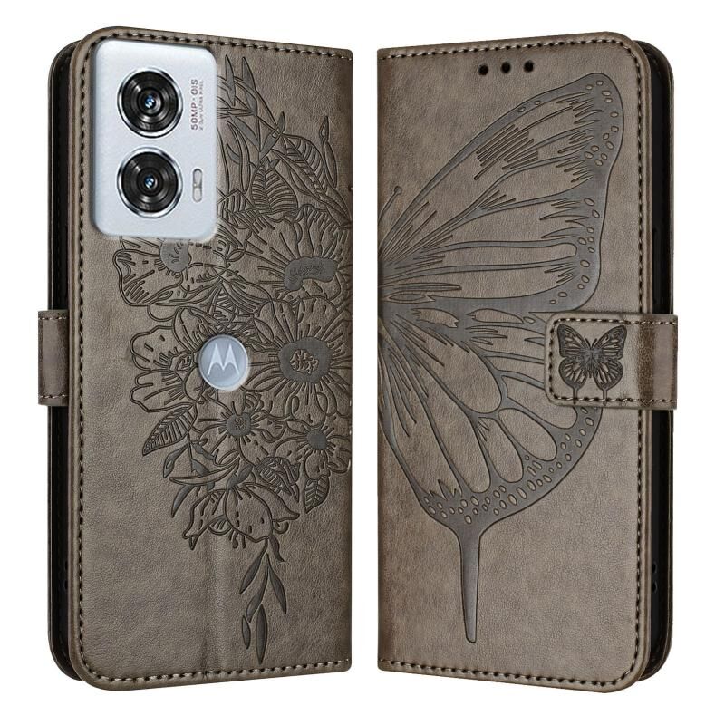 Για Motorola Edge 50 Fusion ανάγλυφη πεταλούδα δερμάτινη θήκη τηλεφώνου (γκρι)