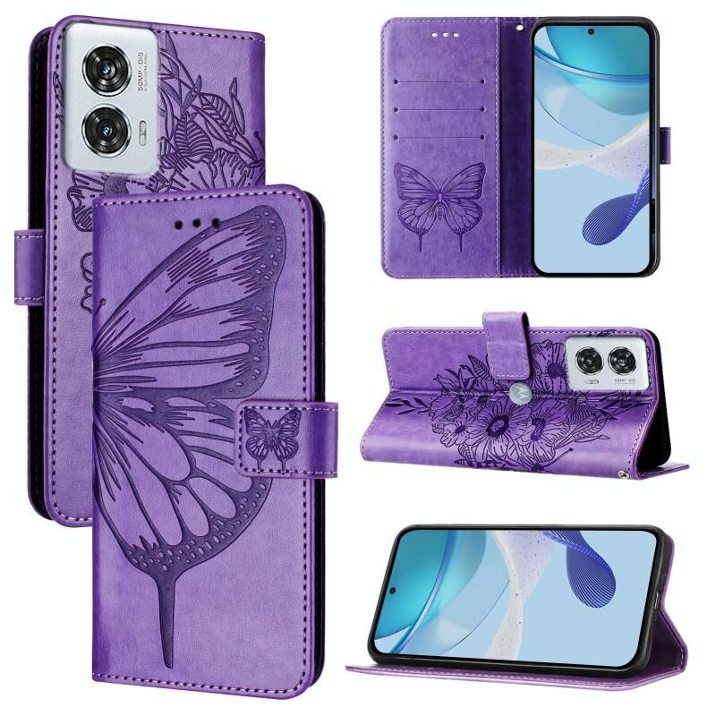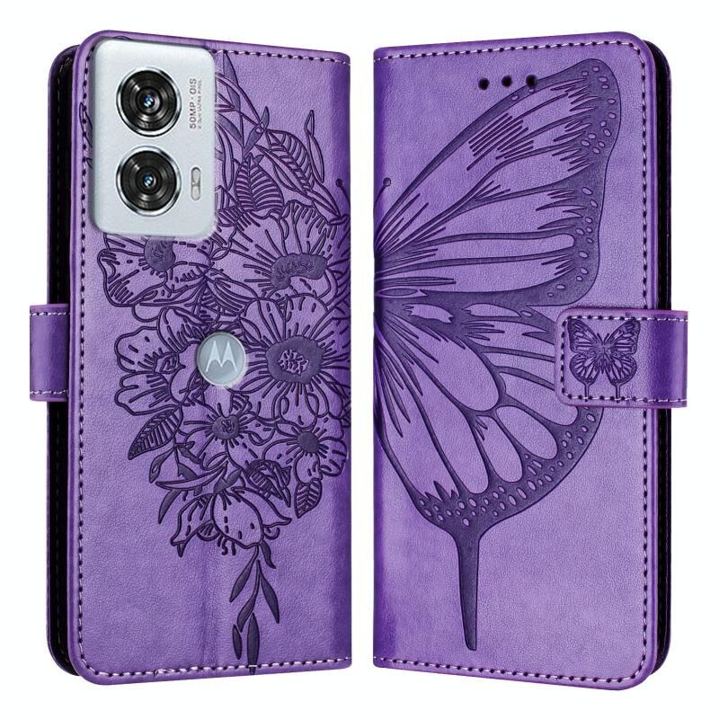 Για Motorola Edge 50 Fusion ανάγλυφη πεταλούδα δερμάτινη θήκη τηλεφώνου (μωβ)