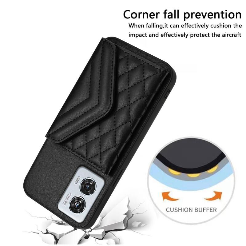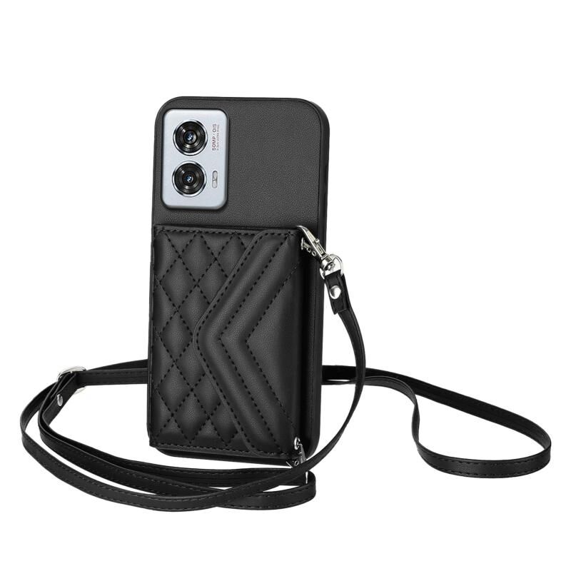 Για Motorola Edge 50 Fusion Global Rhombic υφή κάρτα τσάντα RFID υπόθεση τηλεφώνου με μακρύ κορδόνι (Μαύρο)