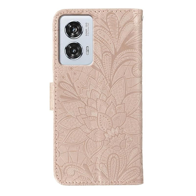 Θήκη τηλεφώνου από δέρμα με πτυσσόμενο σχέδιο για Motorola Edge 50 Fusion, με ανάγλυφο σχέδιο λουλουδιού (Γκρι)