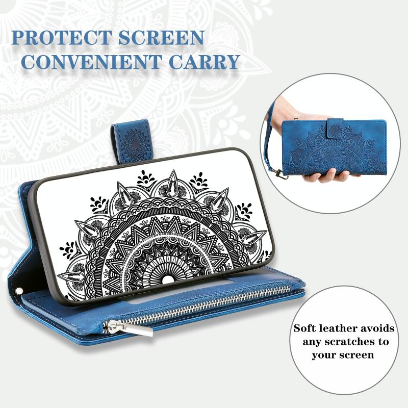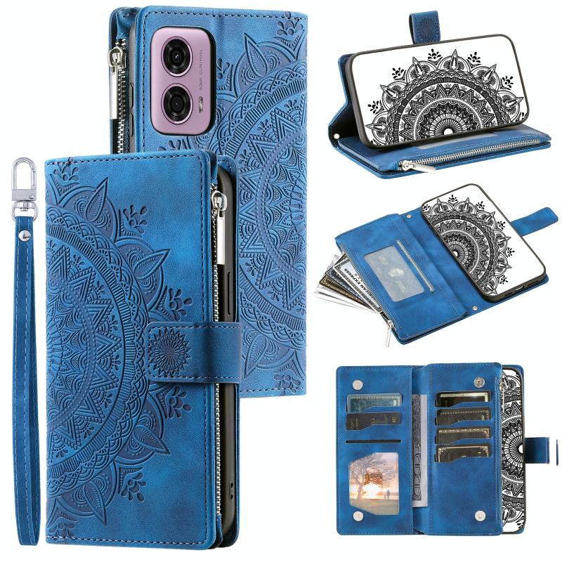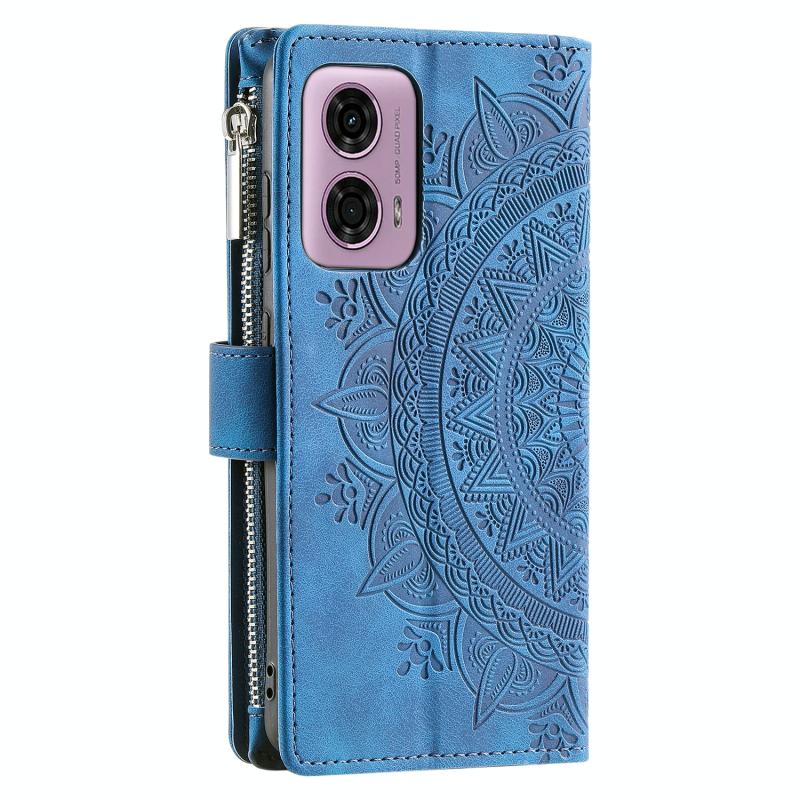 For Motorola Edge 50 Fusion Multi-Card Totem Zipper Leather Phone Case(Blue)