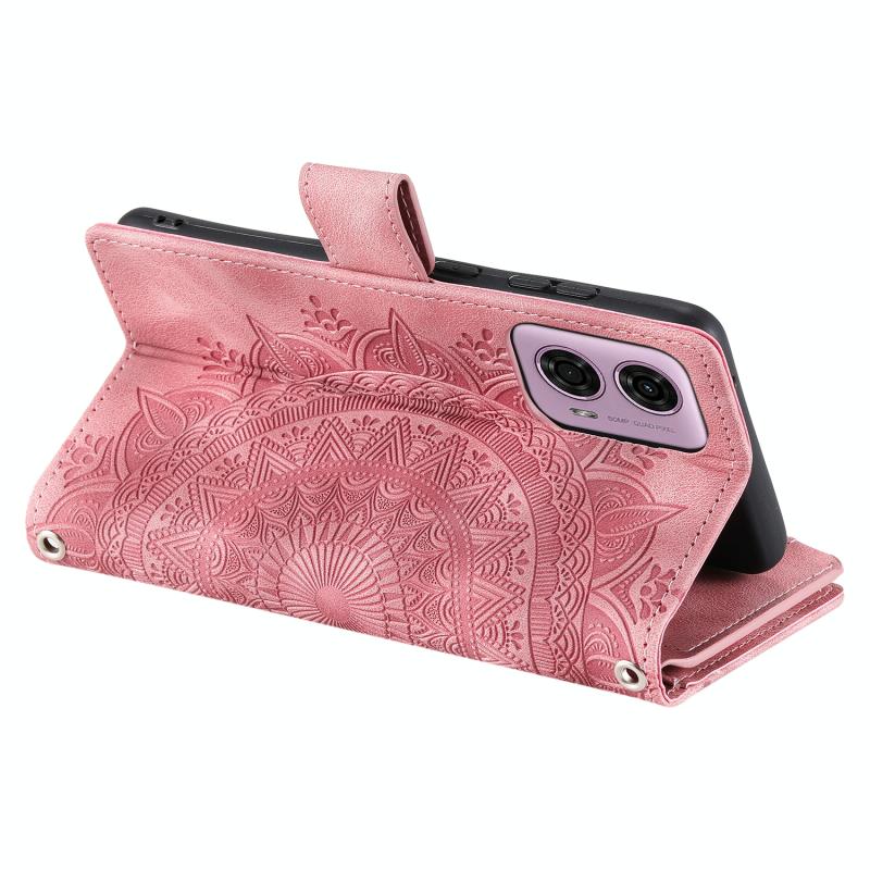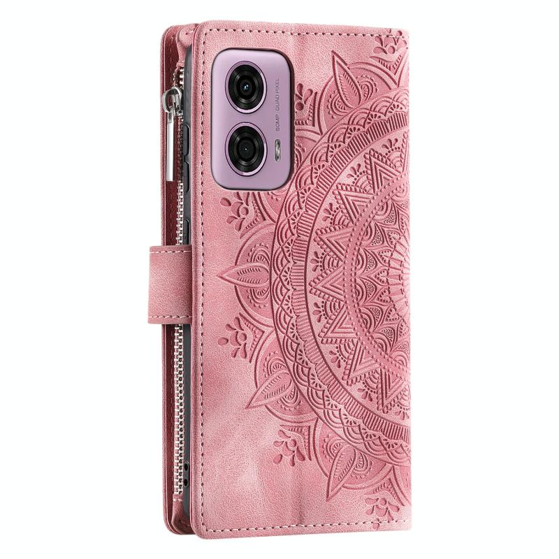 For Motorola Edge 50 Fusion Multi-Card Totem Zipper Leather Phone Case(Pink)
