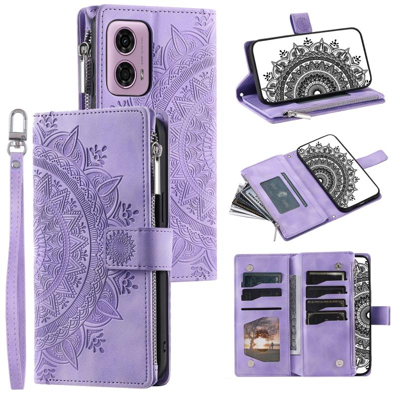 For Motorola Edge 50 Fusion Multi-Card Totem Zipper Leather Phone Case(Purple)