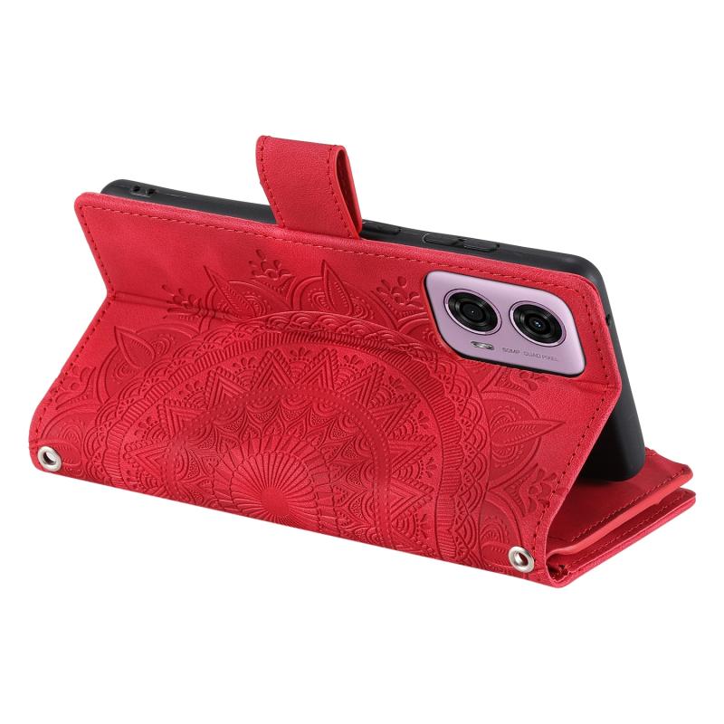 For Motorola Edge 50 Fusion Multi-Card Totem Zipper Leather Phone Case(Red)