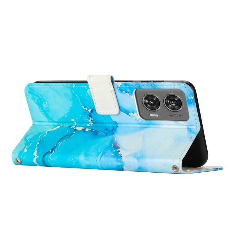 Θήκη τηλεφώνου δερμάτινη με σχέδιο μαρμάρου βαμμένο για Motorola Edge 50 Fusion (Μπλε Πράσινο)