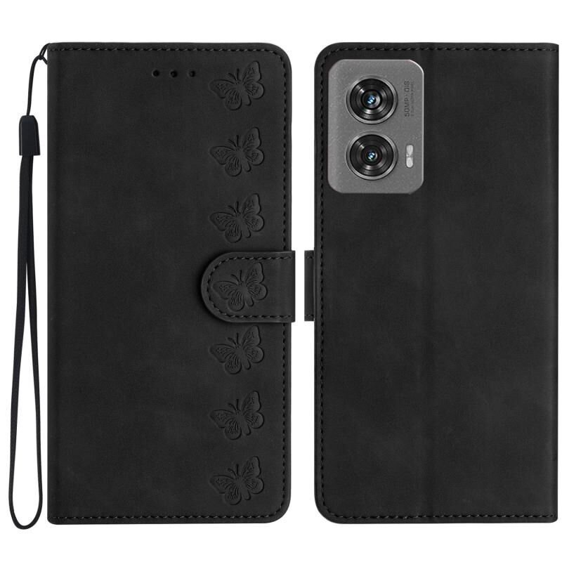 Θήκη κινητού τηλεφώνου από δέρμα με ανάγλυφα σχέδια επτά πεταλούδων για Motorola Edge 50 Fusion (Ροζ)