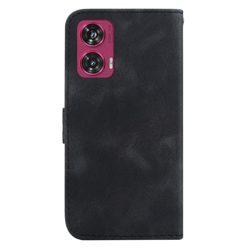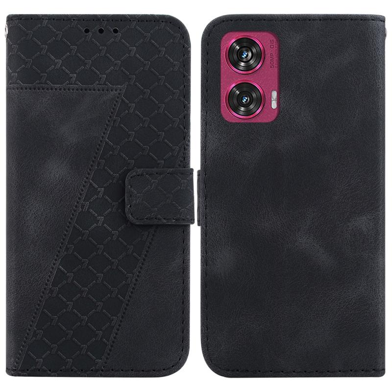Θήκη τηλεφώνου από δέρμα με ανάγλυφο σχέδιο σε σχήμα επτά για Motorola Edge 50 Fusion (Μαύρο)