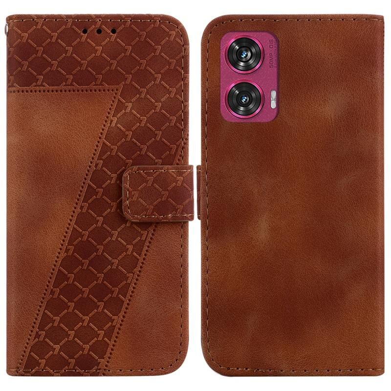 Θήκη τηλεφώνου από δέρμα με ανάγλυφο σχέδιο σε σχήμα επτά για Motorola Edge 50 Fusion (Καφέ)