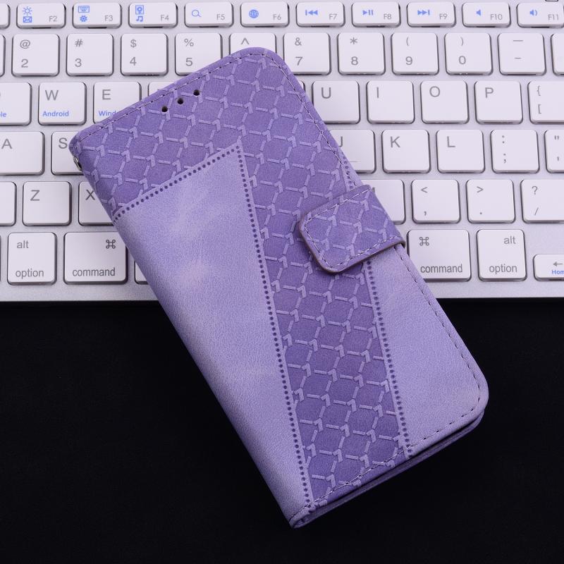 Θήκη τηλεφώνου από δέρμα με ανάγλυφο σχέδιο σε σχήμα επτά για Motorola Edge 50 Fusion (Μωβ)