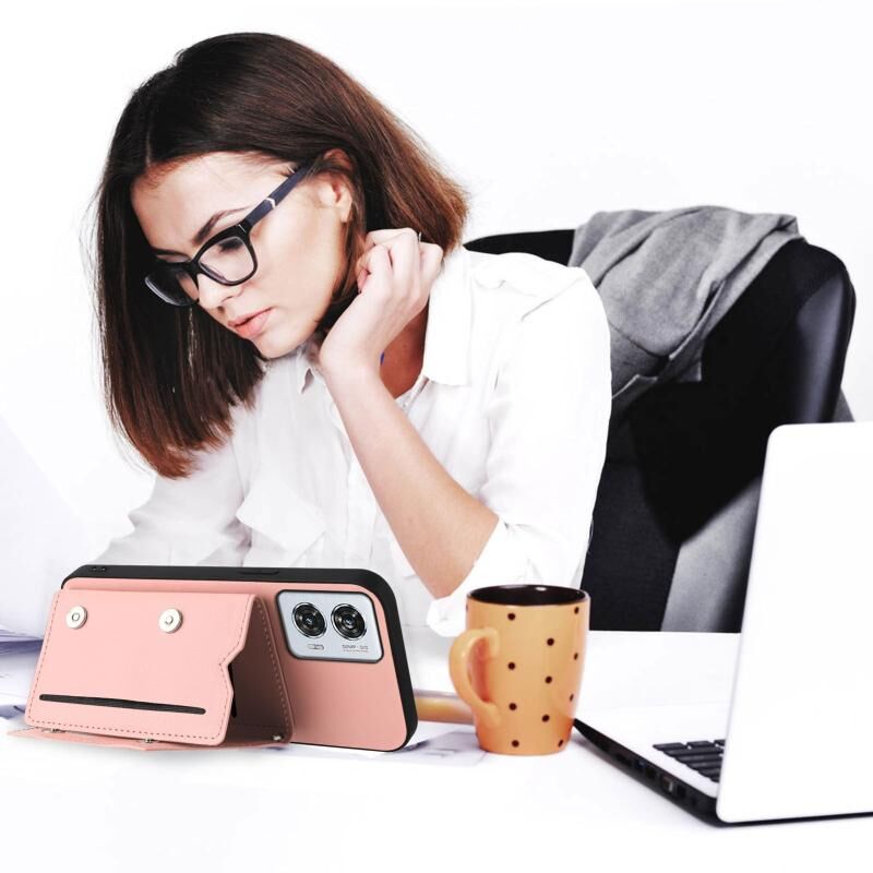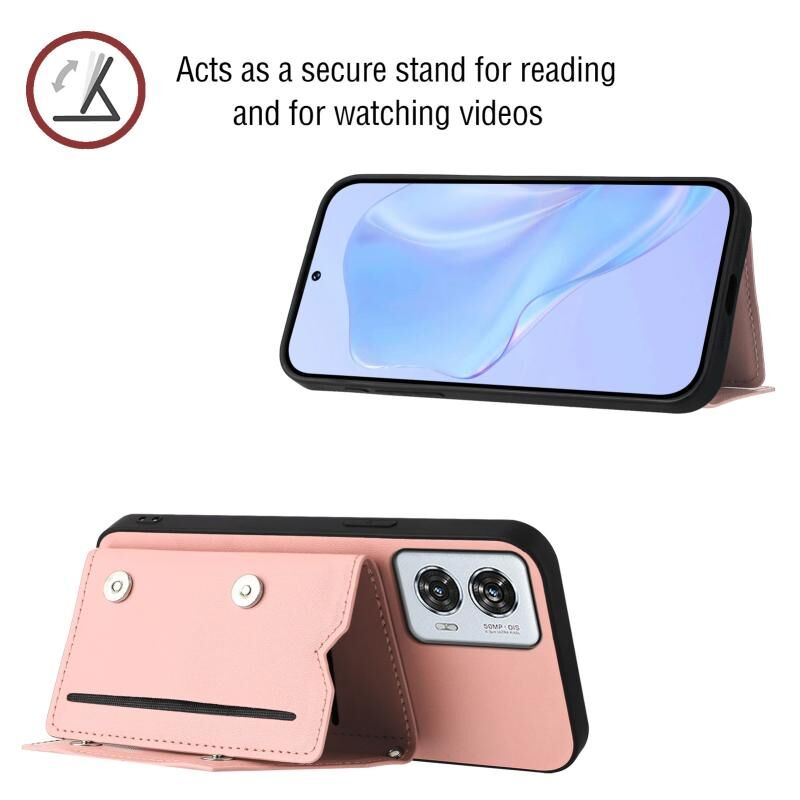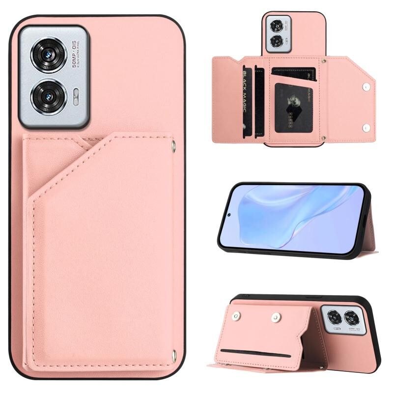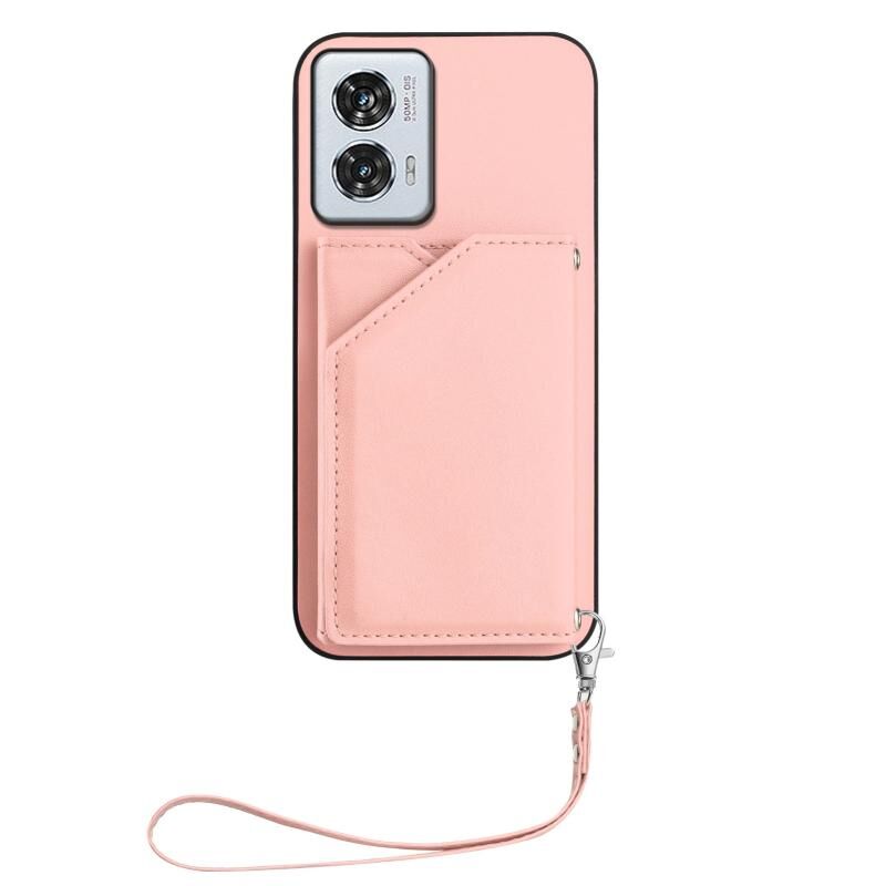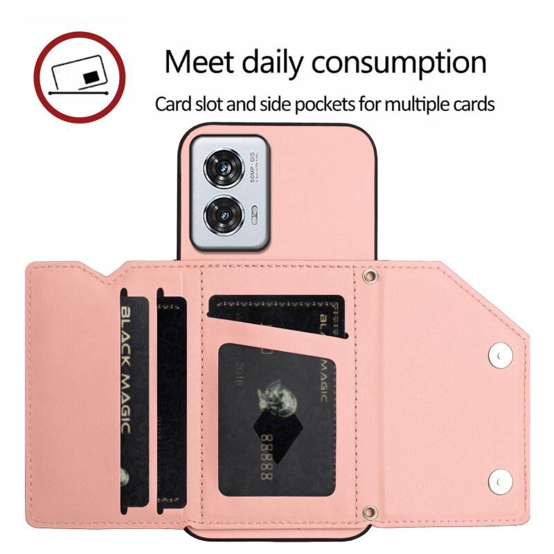Θήκη κινητού τηλεφώνου για Motorola Edge 50 Fusion με αίσθηση δέρματος, τέσσερις θήκες για κάρτες και λουρί καρπού (Ροζ)