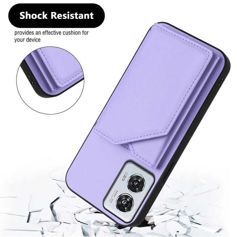 Θήκη κινητού τηλεφώνου για Motorola Edge 50 Fusion με αίσθηση δέρματος, τέσσερις θήκες για κάρτες και λουρί καρπού (Μωβ)