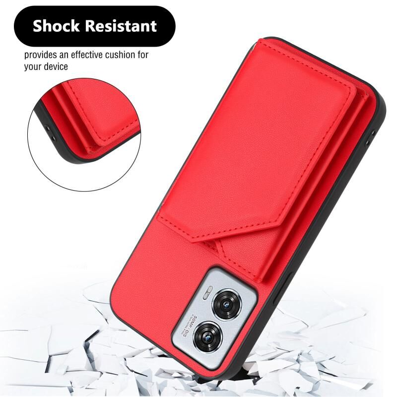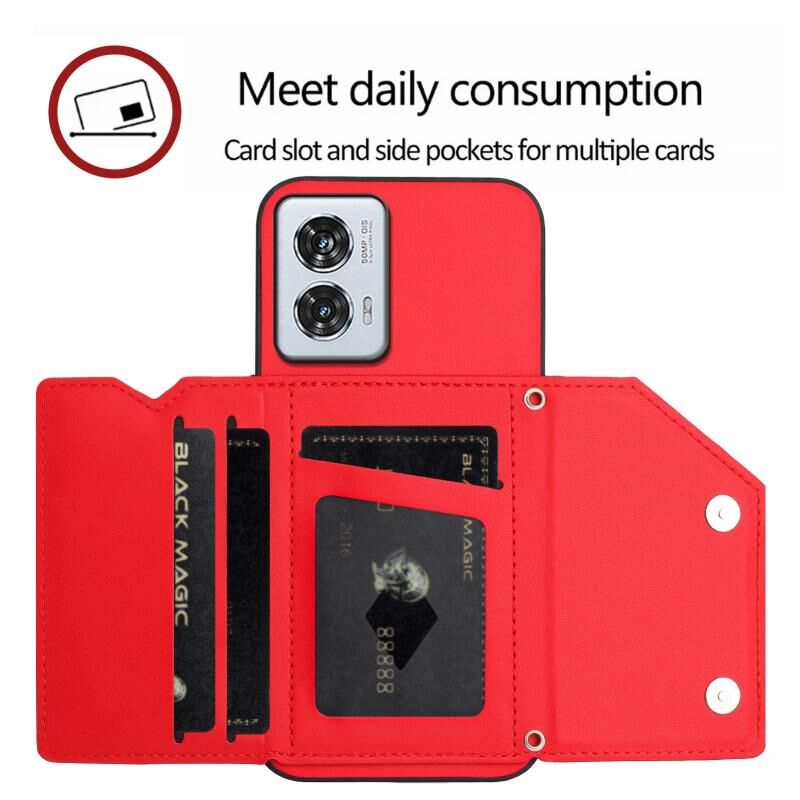Θήκη κινητού τηλεφώνου για Motorola Edge 50 Fusion με αίσθηση δέρματος, τέσσερις θήκες για κάρτες και λουρί καρπού (Ροζ)