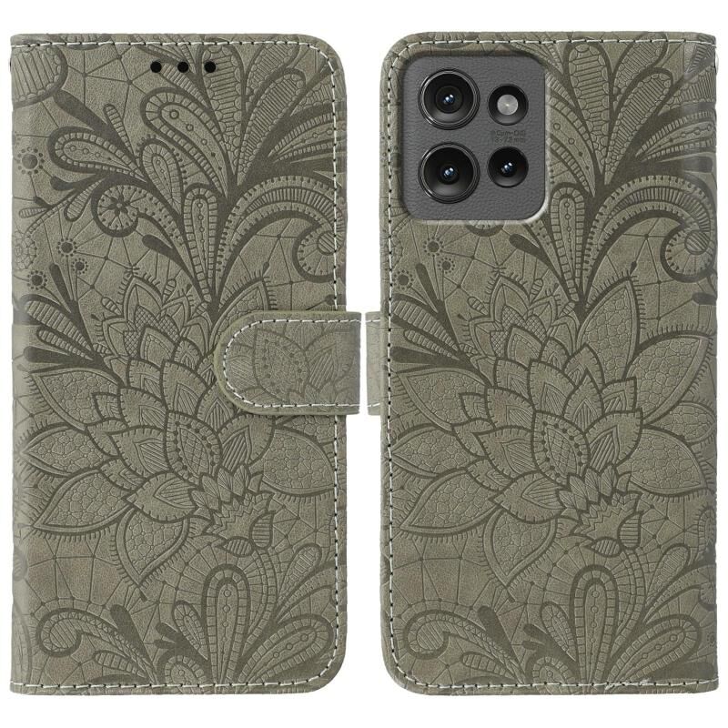 Θήκη τηλεφώνου από δέρμα με ανάγλυφο σχέδιο λουλουδιών Lace για Motorola Edge 50 (Γκρι)