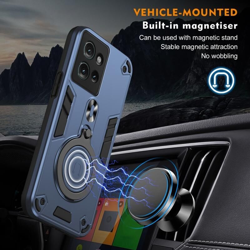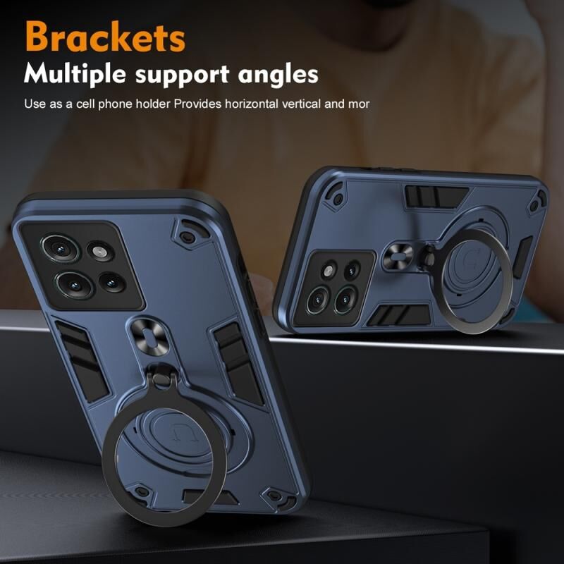 Για Motorola Edge 50 Μεταλλικό δαχτυλίδι 360 μοιρών περιστρεφόμενη θήκη τηλεφώνου PC Hybrid TPU (Navy Blue)
