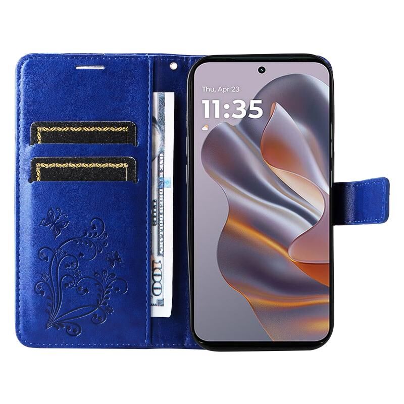 Για Motorola Edge 50 Neo 3D πεταλούδα ανάγλυφο μοτίβο Flip υπόθεση τηλεφώνου δέρμα (μπλε)