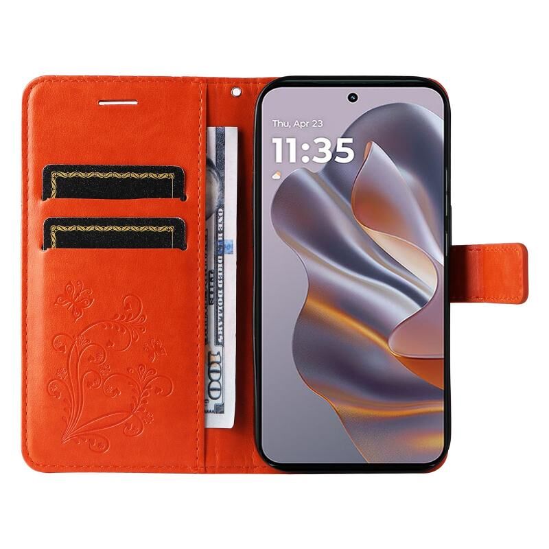 Για Motorola Edge 50 Neo 3D πεταλούδα ανάγλυφο μοτίβο Flip υπόθεση τηλεφώνου δέρμα (πορτοκαλί)
