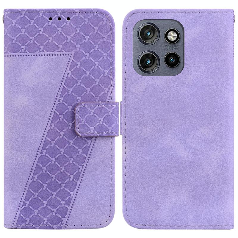 Θήκη τηλεφώνου από δέρμα με ανάγλυφο σχέδιο σε σχήμα επτά για Motorola Edge 50 Neo 5G (Μωβ)