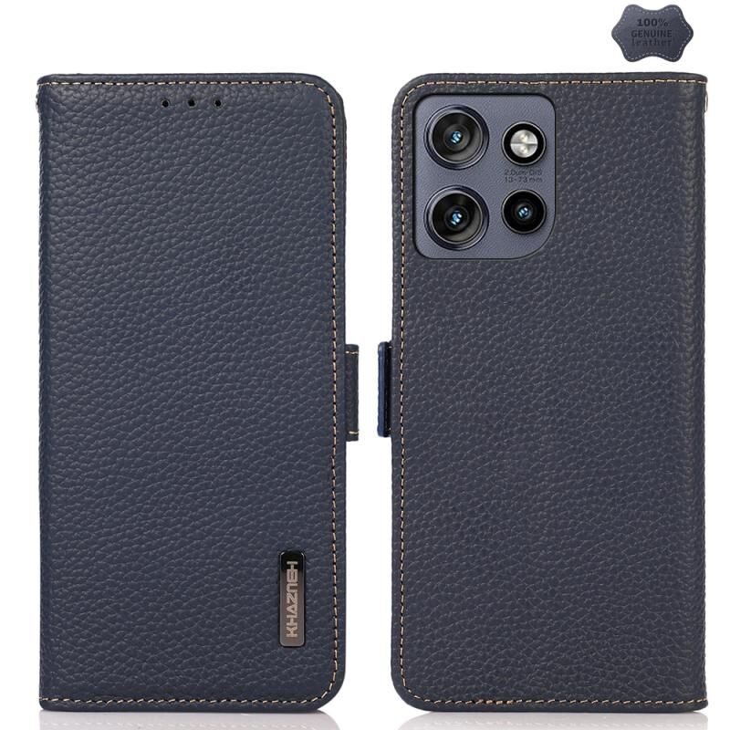 Θήκη τηλεφώνου με μαγνητικό κλείσιμο και γνήσιο δέρμα Litchi για Motorola Edge 50 Neo 5G / Moto S50 5G KHAZNEH (Μαύρο)
