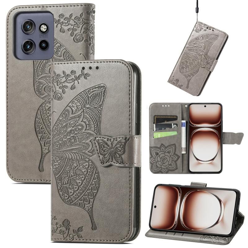 Θήκη τηλεφώνου δερμάτινη ανάγλυφη με σχέδιο πεταλούδας και λουλουδιών για Motorola Edge 50 Neo (Μαύρο)