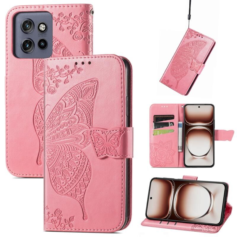 Θήκη τηλεφώνου δερμάτινη ανάγλυφη με σχέδιο πεταλούδας και λουλουδιών για Motorola Edge 50 Neo (Μαύρο)