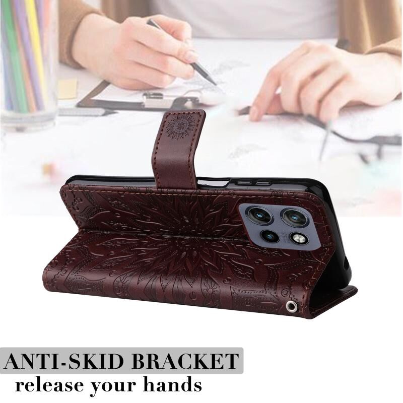 Θήκη τηλεφώνου από δέρμα με σχέδιο ηλιοτροπίου σε ανάγλυφο για Motorola Edge 50 Neo (Μωβ)