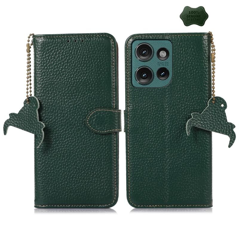 Θήκη τηλεφώνου από γνήσιο δέρμα για Motorola Edge 50 Neo με υφή Litchi και προστασία RFID (πράσινο)