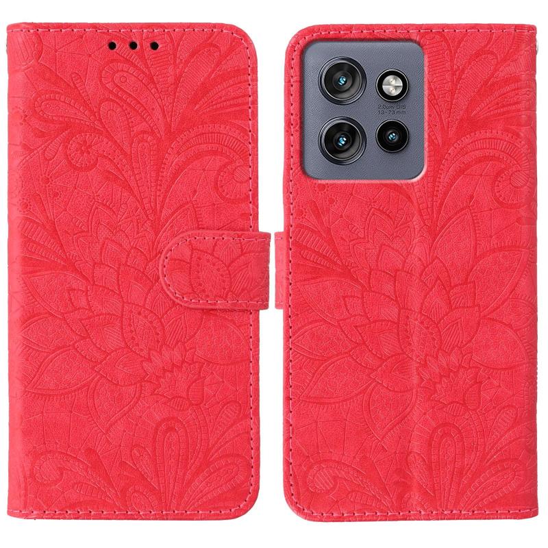 For Motorola Edge 50 Neo Lace Flower Embossing Flip Leather Phone Case(Red)