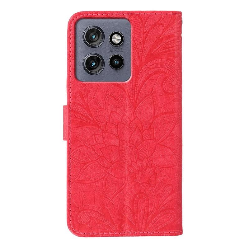 Θήκη τηλεφώνου από δέρμα με πτυσσόμενο καπάκι για Motorola Edge 50 Neo με ανάγλυφο σχέδιο λουλουδιών δαντέλας (Γκρι)