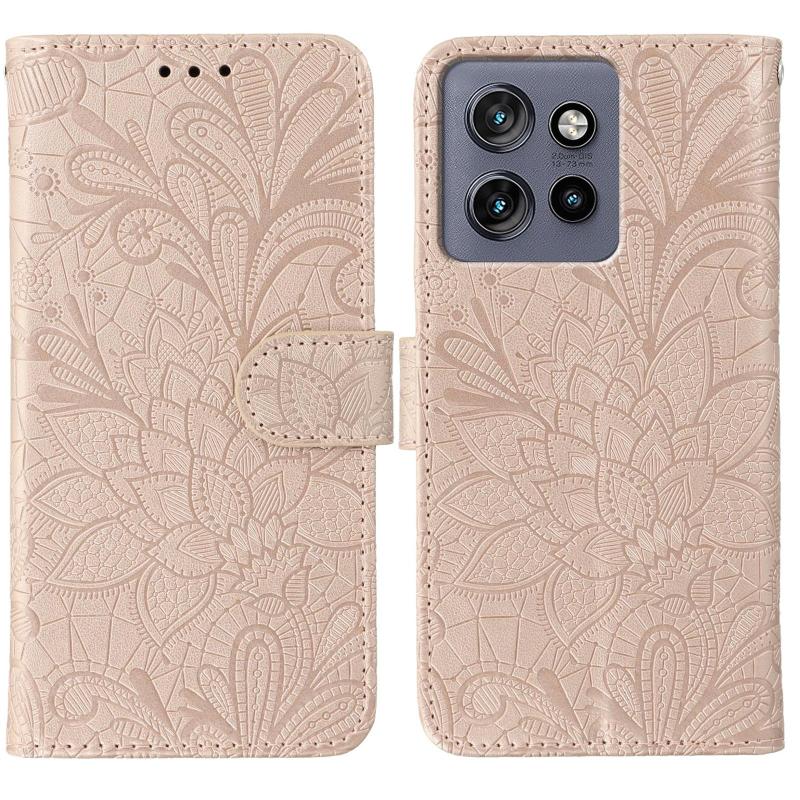 For Motorola Edge 50 Neo Lace Flower Embossing Flip Leather Phone Case(Rose Gold)