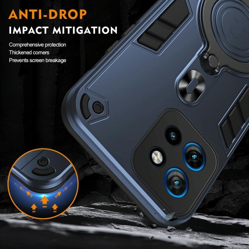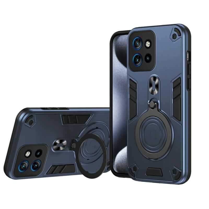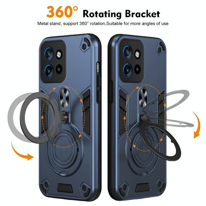 Για Motorola Edge 50 Neo Μεταλλικό δαχτυλίδι 360 μοιρών περιστρεφόμενη θήκη τηλεφώνου PC Hybrid TPU (Navy Blue)