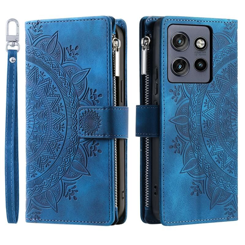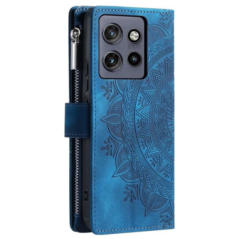Για Motorola Edge 50 Neo Multi-Card Totem φερμουάρ δερμάτινη θήκη τηλεφώνου (μπλε)