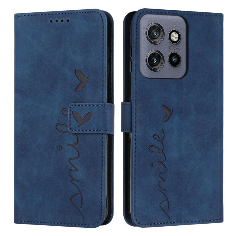 Για Motorola Edge 50 Neo Skin Feel Heart ανάγλυφη δερμάτινη θήκη τηλεφώνου με μακρύ κορδόνι (μπλε)