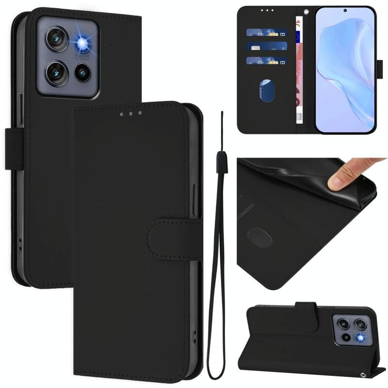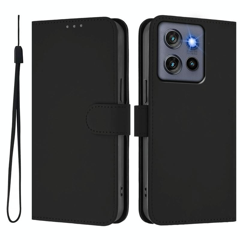 Για Motorola Edge 50 Neo Skin Feel Solid Color Leather Phone Case με κορδόνι (Μαύρο)