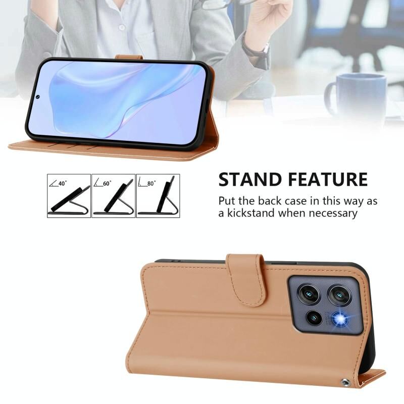 Για Motorola Edge 50 Neo Skin Feel Solid Color Leather Phone Case με κορδόνι (Nude)