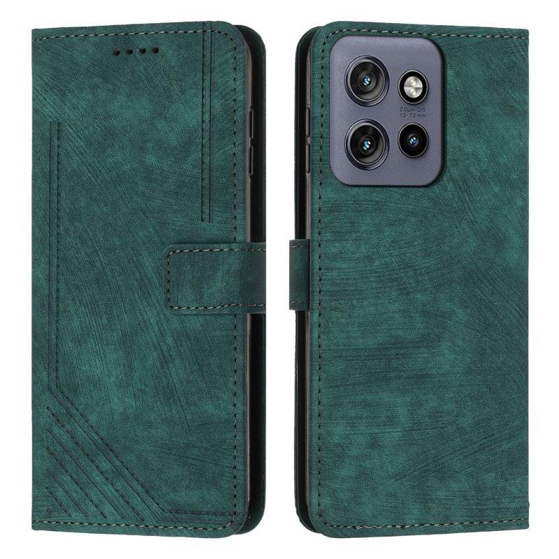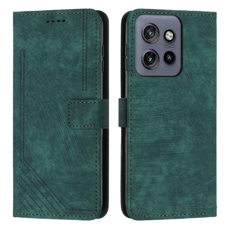For Motorola Edge 50 Neo Skin Feel Stripe Pattern Leather Phone Case with Lanyard(Green)