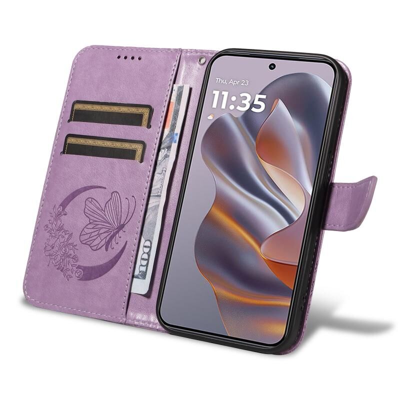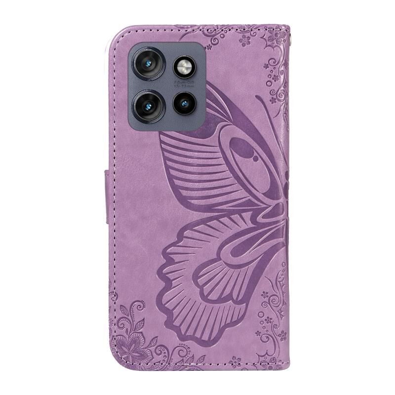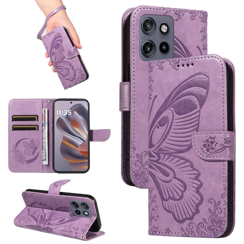 Θήκη τηλεφώνου από δέρμα με ανάγλυφο σχέδιο πεταλούδας Swallowtail για Motorola Edge 50 Neo (Μπλε)
