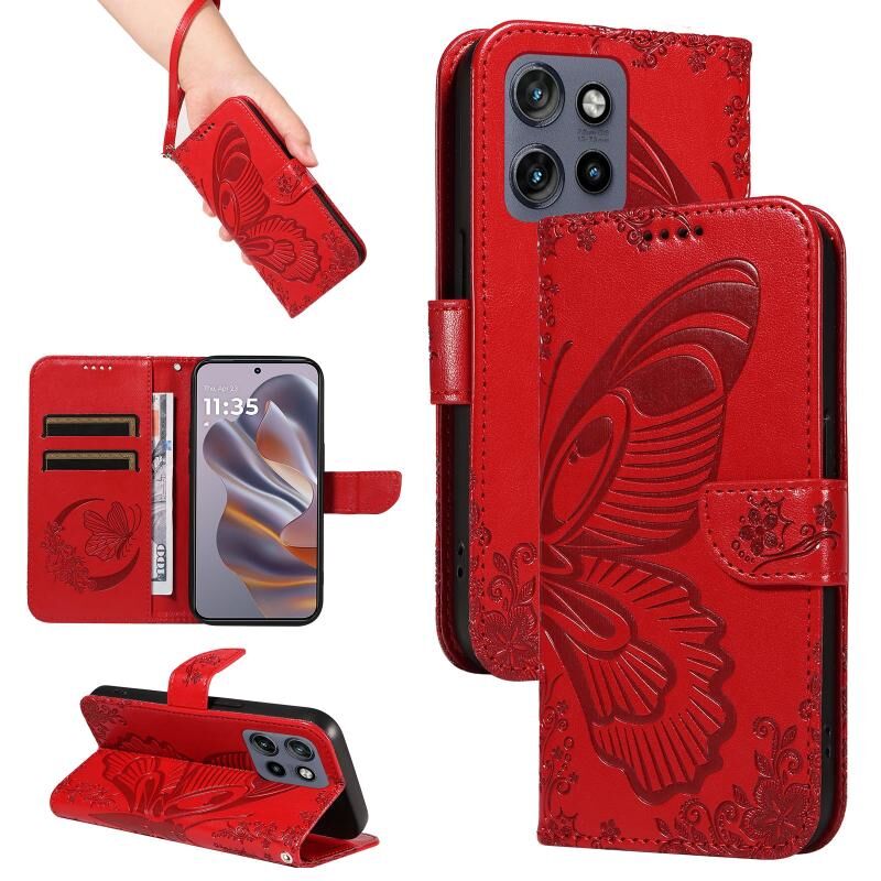 Θήκη τηλεφώνου από δέρμα με ανάγλυφο σχέδιο πεταλούδας Swallowtail για Motorola Edge 50 Neo (Μπλε)