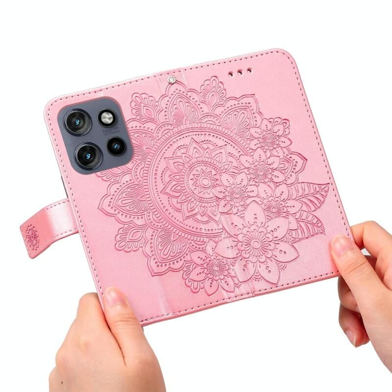 Θήκη τηλεφώνου από δέρμα με ανάγλυφο επτά πέταλα λουλουδιών για Motorola Edge 50 Neo / ThinkPhone 25 (Ανοιχτό Μωβ)
