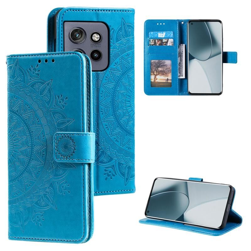 Για Motorola Edge 50 Neo Totem λουλούδι ανάγλυφο δερμάτινη θήκη τηλεφώνου με κορδόνι (μπλε)