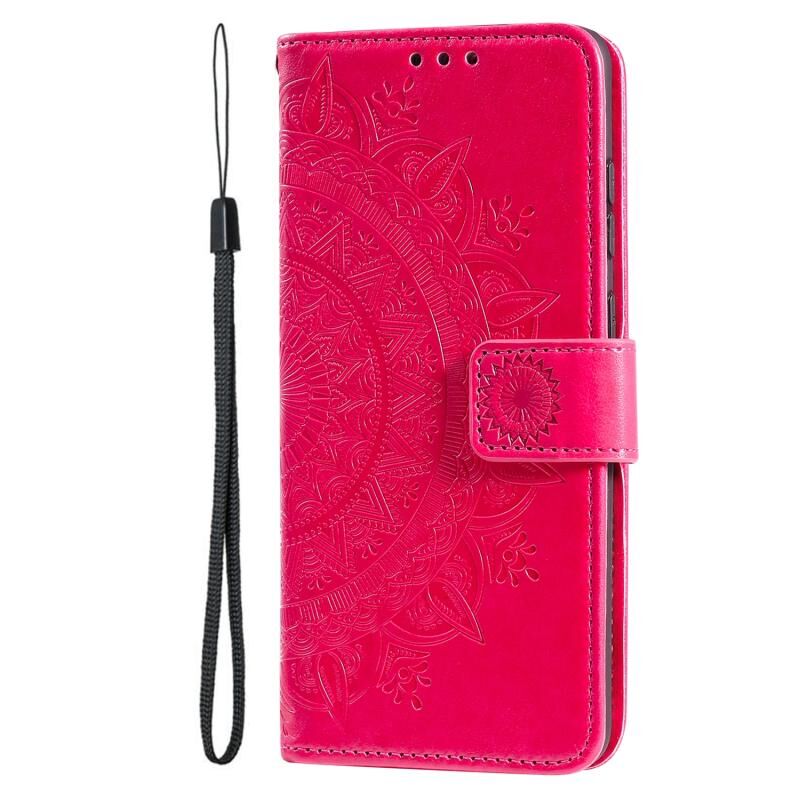 Για Motorola Edge 50 Neo Totem λουλούδι ανάγλυφο δερμάτινη θήκη τηλεφώνου με κορδόνι (κόκκινο)