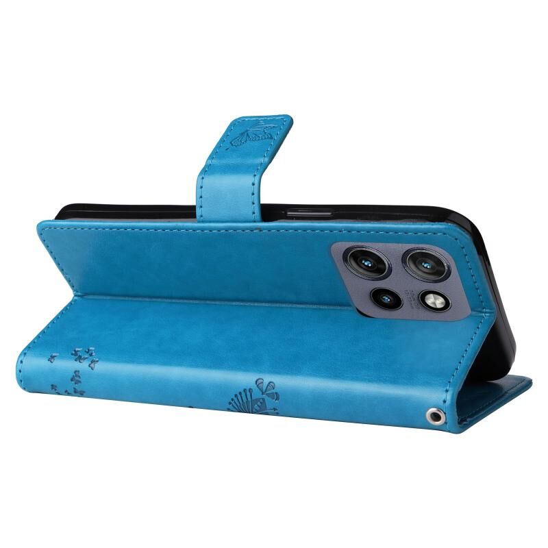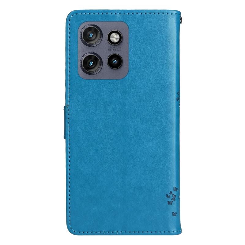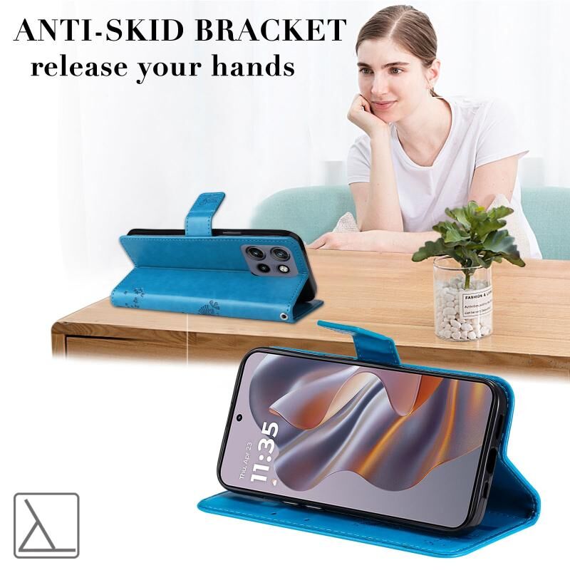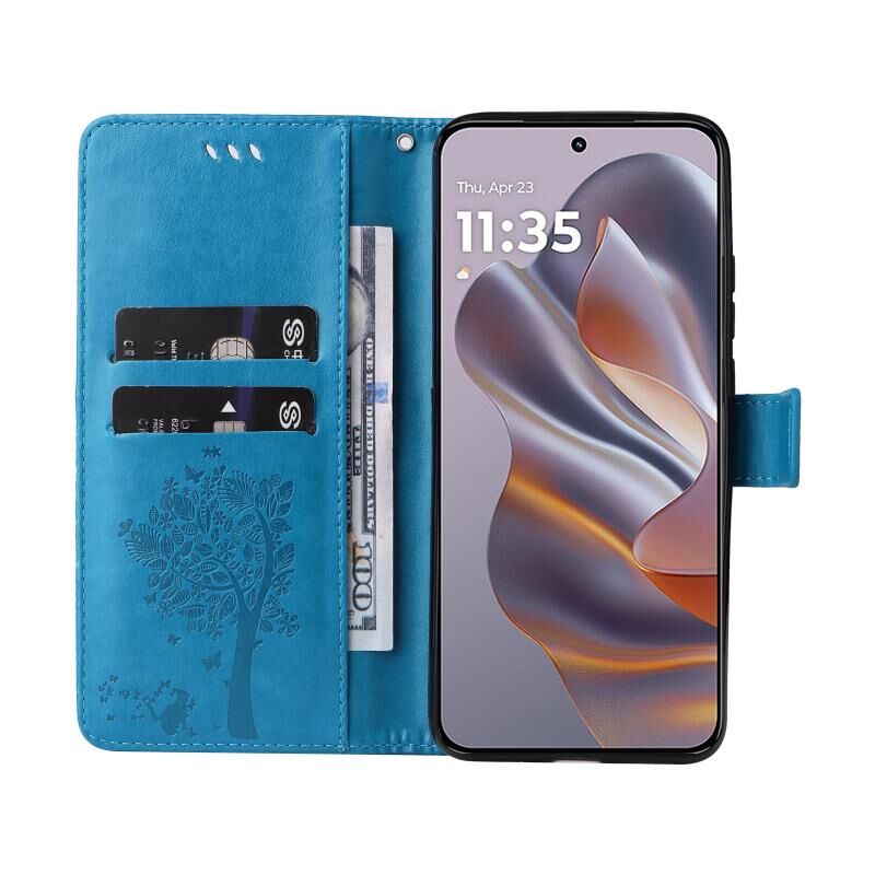 Θήκη τηλεφώνου δερμάτινη, τύπου flip, με ανάγλυφο σχέδιο δέντρου & γάτας για Motorola Edge 50 Neo (Ροζ)