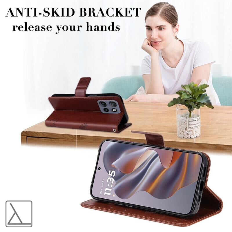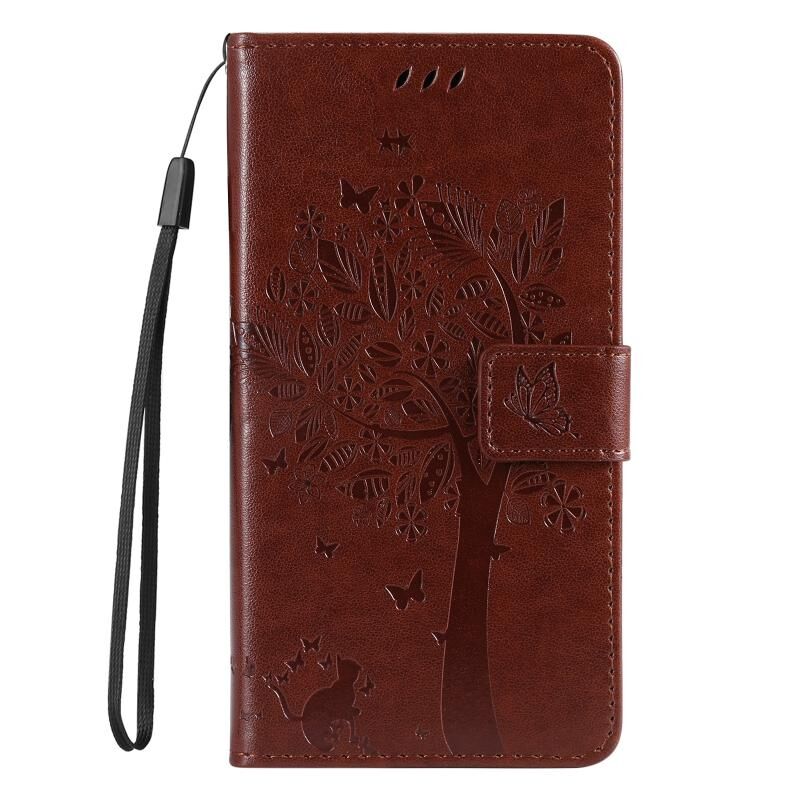 Θήκη τηλεφώνου από δέρμα με σχέδιο αναγλύφου δέντρου & γάτας για Motorola Edge 50 Neo (Καφέ)