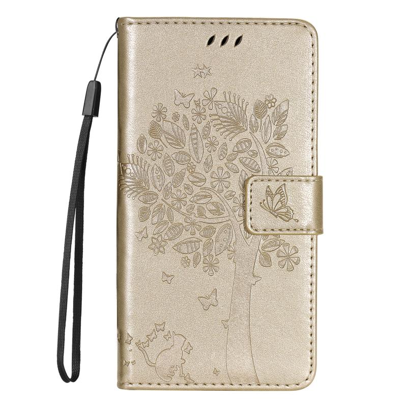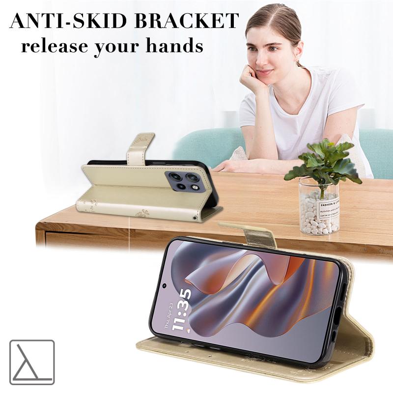 Θήκη τηλεφώνου δερμάτινη, τύπου flip, με ανάγλυφο σχέδιο δέντρου & γάτας για Motorola Edge 50 Neo (Ροζ)