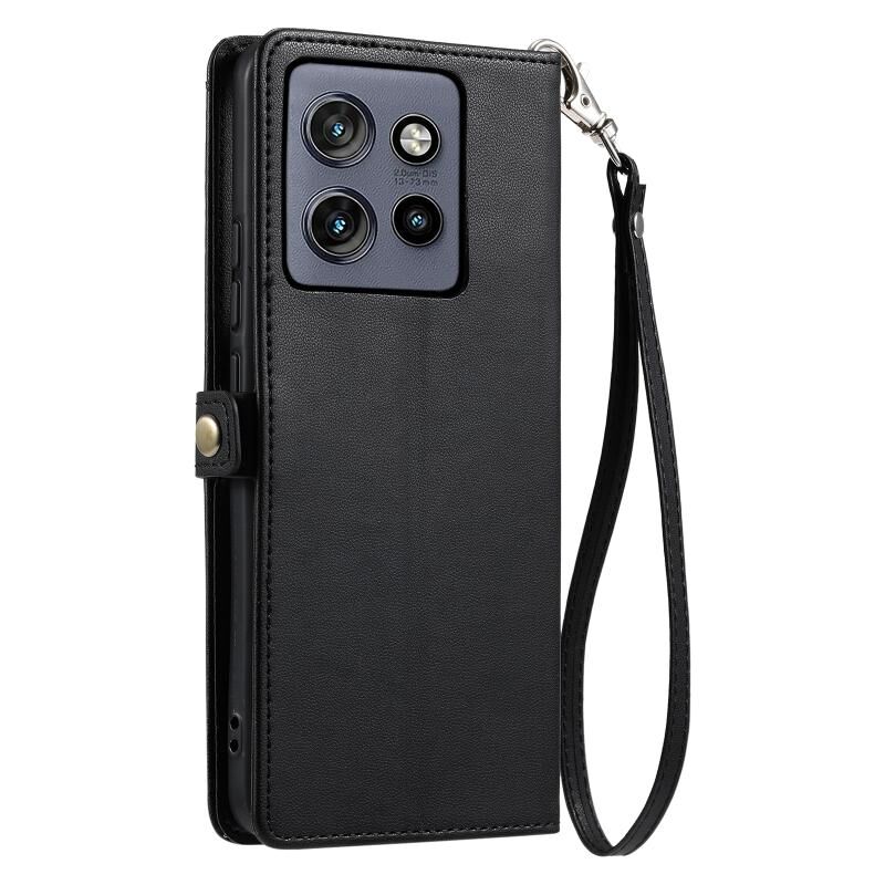 Για Motorola Edge 50 Neo Πορτοφόλι Multi-card Slot Δερμάτινη θήκη τηλεφώνου με κορδόνι (Μαύρο)