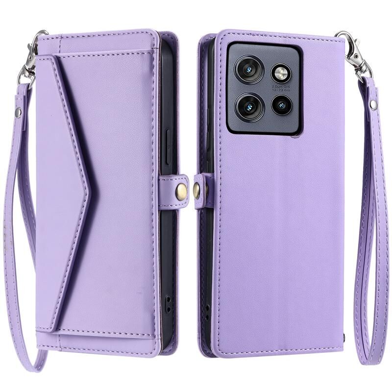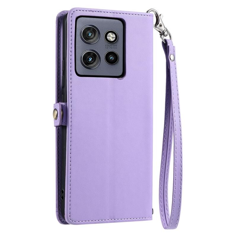 Για Motorola Edge 50 Neo Πορτοφόλι Multi-card Slot Δερμάτινη θήκη τηλεφώνου με κορδόνι (μωβ)