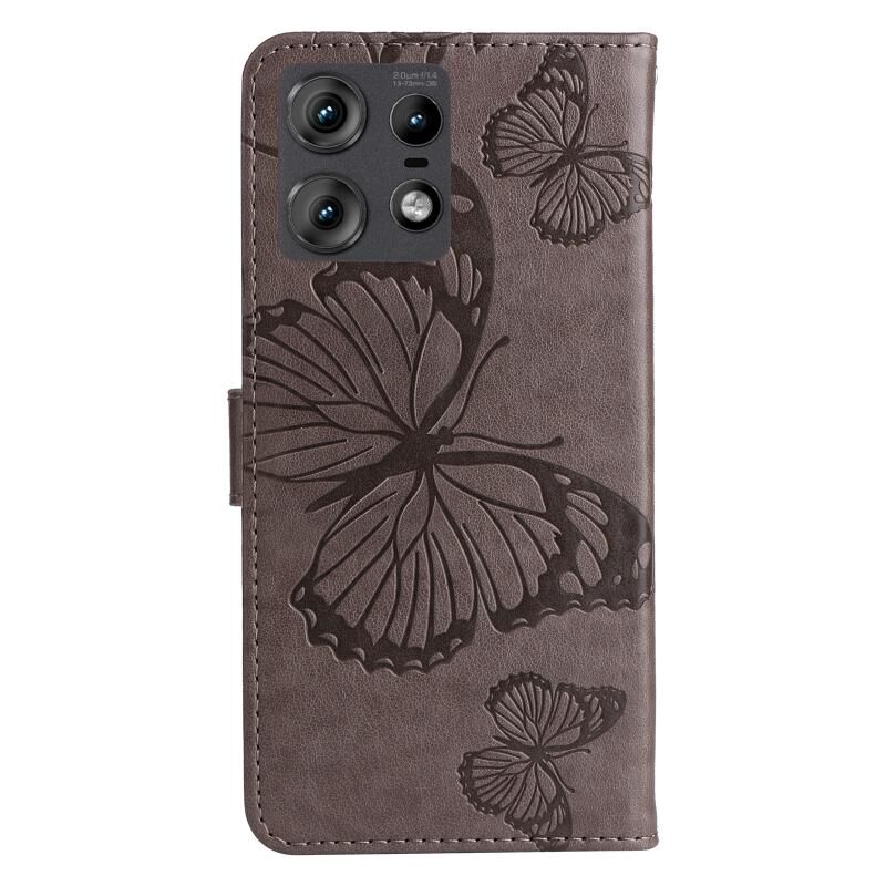 Για Motorola Edge 50 Pro 3D πεταλούδα ανάγλυφο μοτίβο Flip δέρμα υπόθεση τηλεφώνου (γκρι)