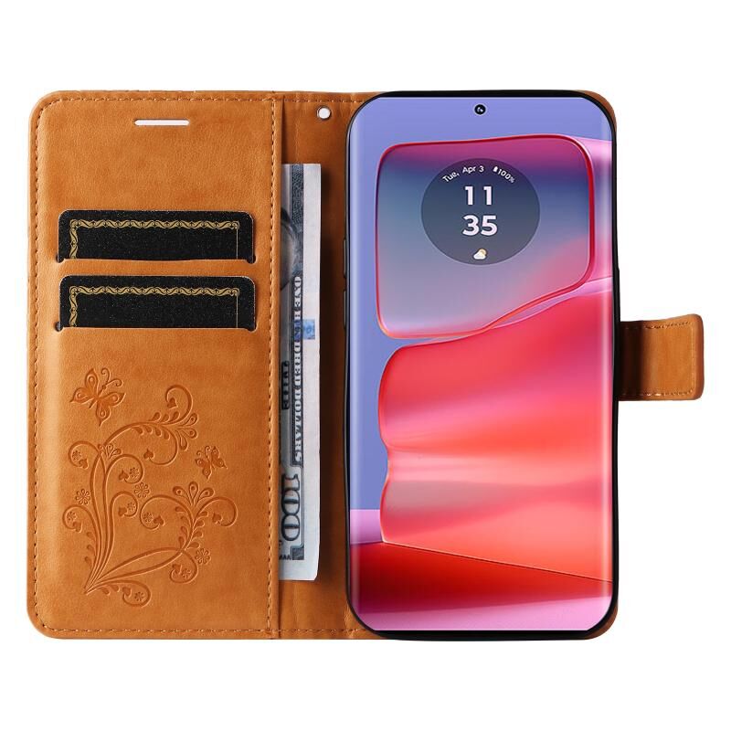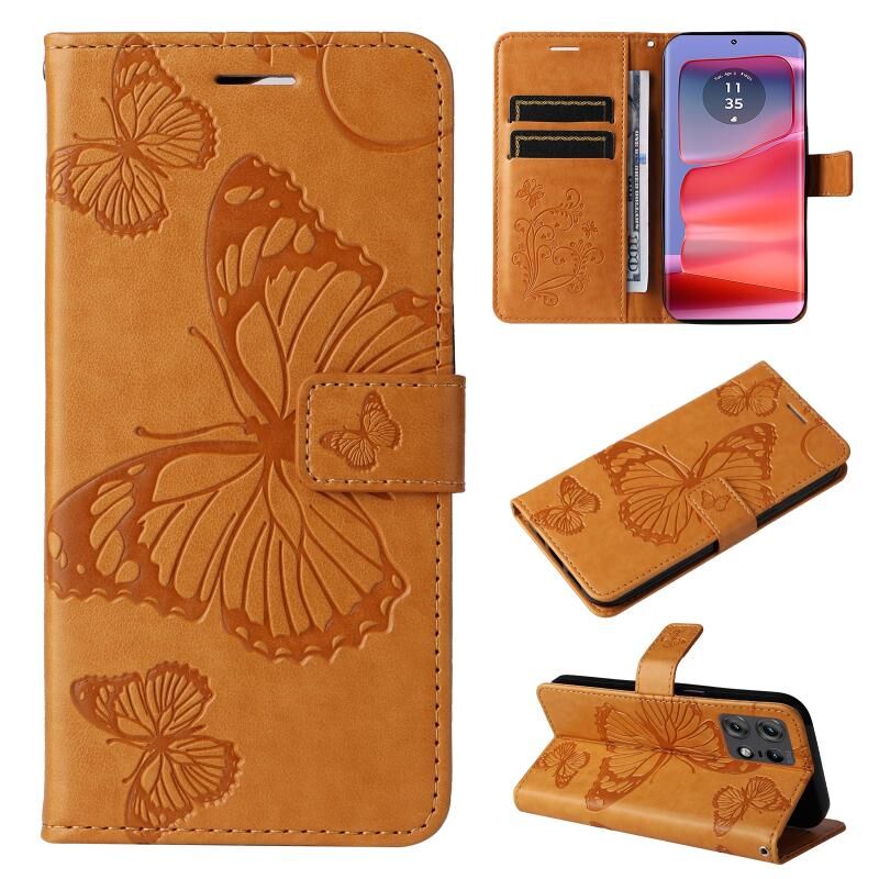 Για Motorola Edge 50 Pro 3D πεταλούδα ανάγλυφο μοτίβο Flip υπόθεση τηλεφώνου δέρμα (κίτρινο)