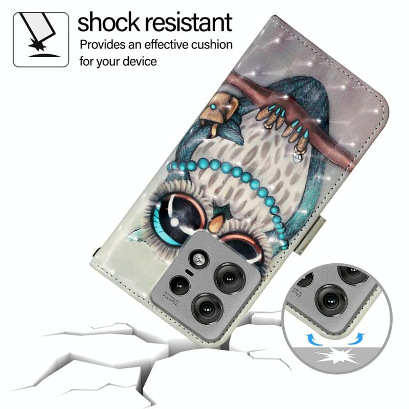 Θήκη τηλεφώνου δερμάτινη με οριζόντια αναδίπλωση και τρισδιάστατη βαφή για Motorola Edge 50 Pro (Γκρι Κουκουβάγια)