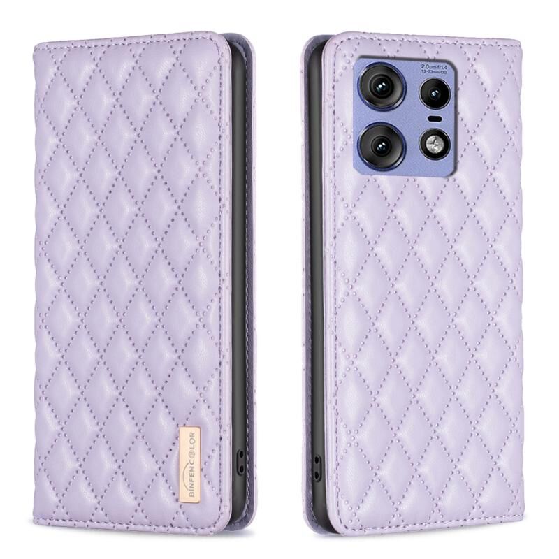 Για Motorola Edge 50 Pro 5G Diamond Lattice Μαγνητική δερμάτινη θήκη Flip Phone Case (Μωβ)