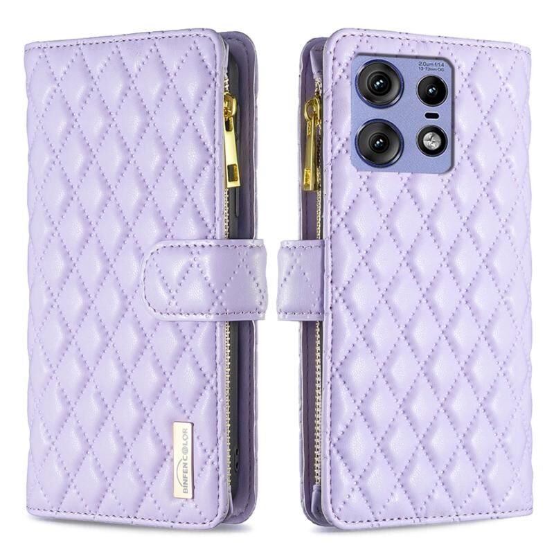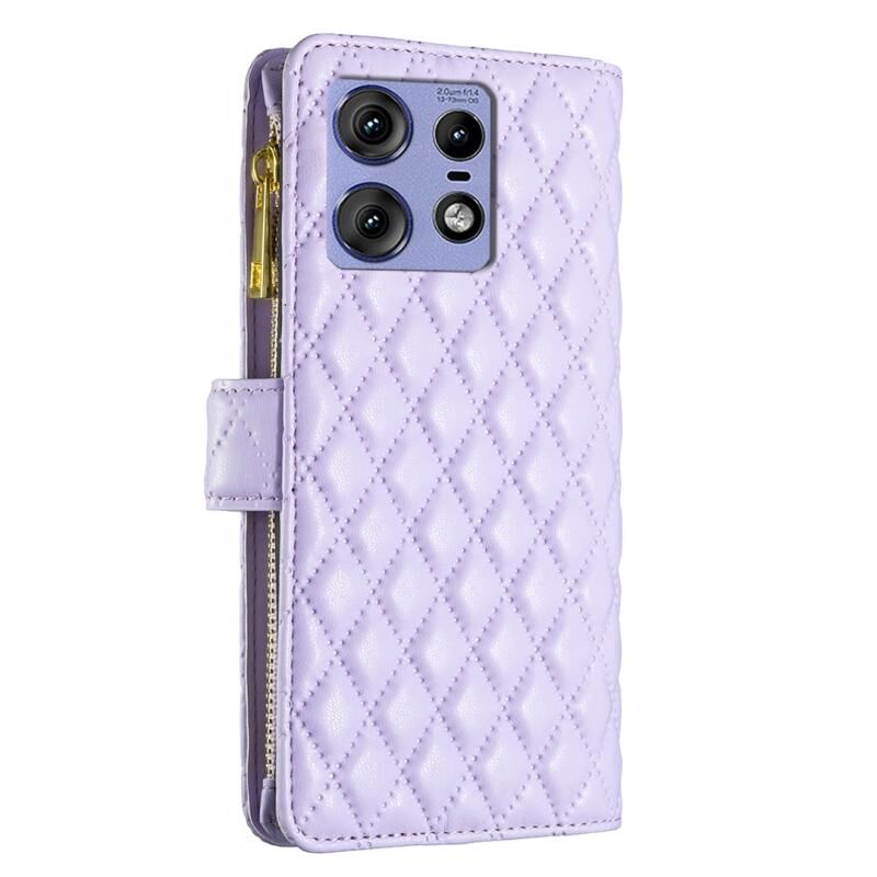 Για Motorola Edge 50 Pro 5G Diamond Lattice φερμουάρ πορτοφόλι δέρμα Flip υπόθεση τηλεφώνου (Μωβ)